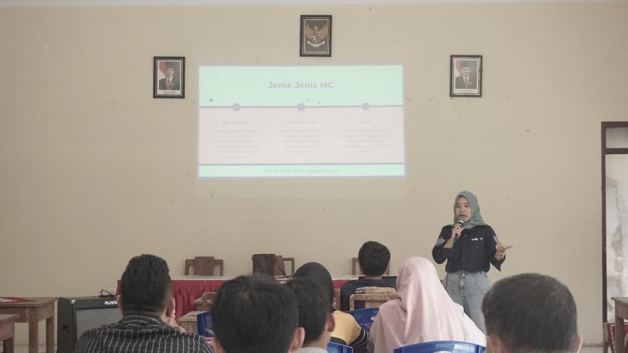 Pelatihan tersebut berisi tentang Master of Ceremony, dengan pembicara dari salah satu mahasiswi KKN Sekolah Tinggi Multi Media. Dalam Pelatihan ini membahas tuntas tentang bagaimana menjadi seorang MC yang baik dan benar. Setelah materi disampaikan, peserta Pelatihan mempratekkan langsung sesuai dengan materi yang telah dipaparkan.
